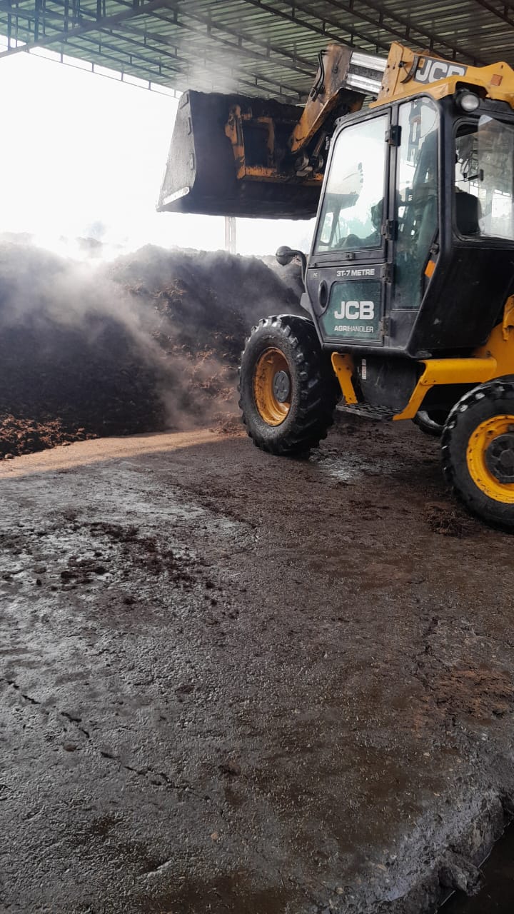 Mushroom compost is a mixture of organic materials, such as straw, manure, and other natural substances, that’s used to grow mushrooms. After the mushrooms are harvested, the compost is sterilized and sold for use in Agri-farms and gardens.